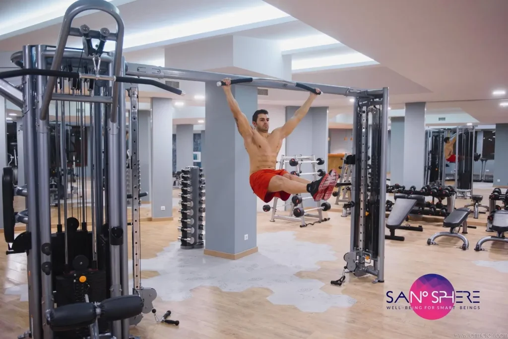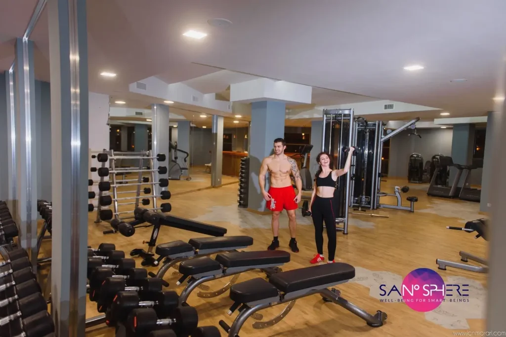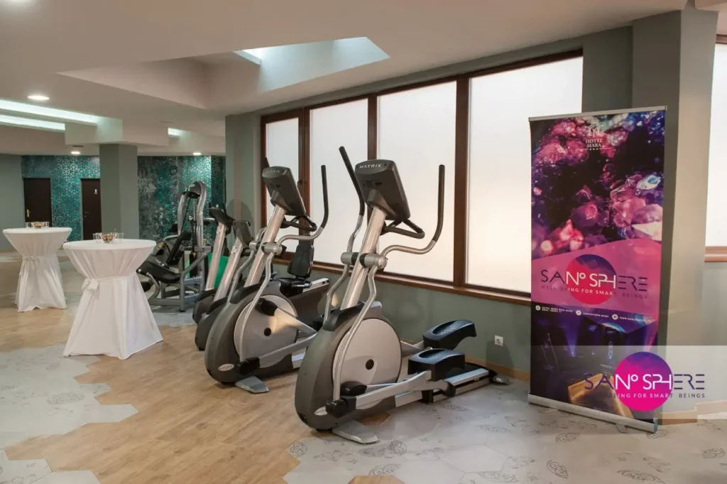 Our 300-square-metre fitness and gym area combines professional equipment with a modern, inspiring design that motivates every visitor. The space is tailored for both beginners and experienced athletes, offering everything needed for strength training, cardio, and stretching.
